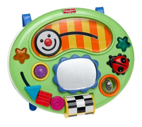 This toy keeps my son entertained in his crib for about 15 minute stretches-- just long enough for me to take a shower or wake up a little bit before I go pick him up in the morning. He loves the moving smiley face and the music, but he doesn\'t seem particularly interested in the other parts of the toy(mirror, ladybug, colored shapes).