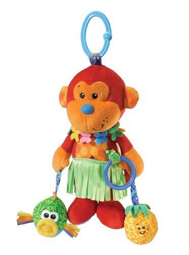 Mallory the Monkey features bright colors and interesting textures for Baby's developing senses. Attaches easily to car seats and strollers -- the perfect pal for take-along fun! Measures 8 x 3 x 14.