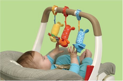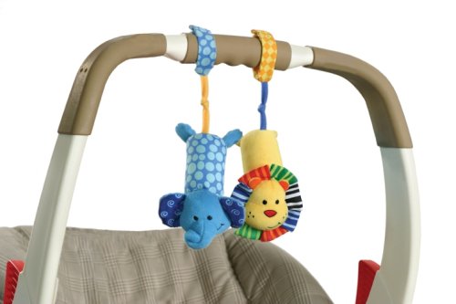 These colorful companions will keep your baby company wherever she goes. The adorable Tag-Along Chimes from Infantino will fascinate your infant with a gentle chiming melody. Attach them to a car seat, stroller or carrier using the convenient magnetic fasteners.