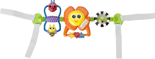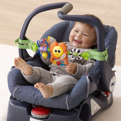 Raise the bar with this product: Spin, Rattle & Go Toy Bar features a spinning rattle with colorful beads, a spinning flower with a mirror, and a spinning bug character on a swing, making it the ultimate toy bar!