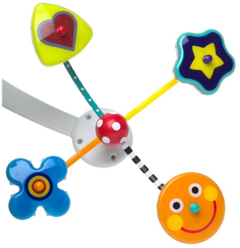 This is a great mobile! It is versatile, plays music and moves on its own. I will never forget seeing little baby smiling up at the smiley face. Unlike so many mobiles, this one is actually designed to be viewed from below. The parts come out and make good rattles, and we used the music for months to ease baby off to sleep. Love it!