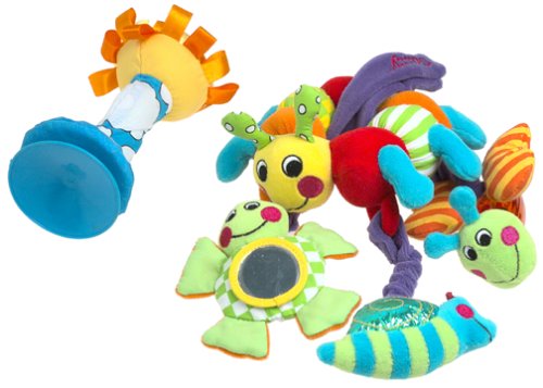 The Toys are entertaining. Crinkles, Colors, Noises, Textures & a Mirror. Very nice. All the things she likes to play with.