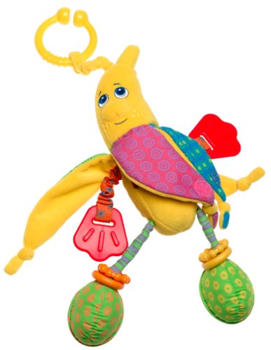I can not even begin to say how much my son loves this toy. At six months, he gives such a gigantic smile when you give this banana to him. This toy has so many fun exploring components- 1) the soft texture of the banana is good for hugging, 2) when held by the horseshoe shaped clip, it makes a squeaky sound. 3) the banana peels have crinkle paper in them, 4) her legs can be pulled, 5) there are mirrors on the bottom of her feet and, 6) there are textured pads for teething babies. Such a great idea for a toy, that I also bought the apple toy that belongs to the Tiny Love fruit series. However, currently, my son only goes bananas over this banana toy!