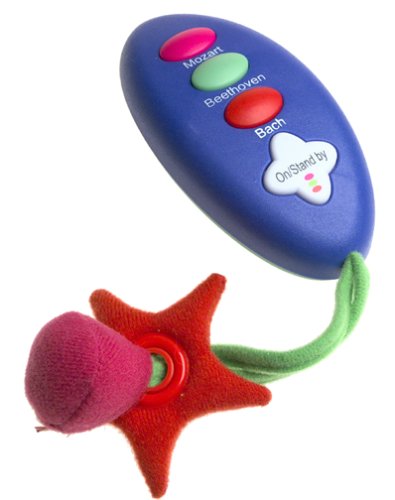 The original Symphony-in-Motion crib mobiles have long been favorite baby distracters/soothers, with pleasant, not-too-tinny music and spinning colorful critters and whirligigs. The only thing missing has been a remote control so parents could keep the music and action going without disturbing an almost-slumbering baby. Well�(sound the horns!) enter the Deluxe model! All the appeal of the original, plus a remote. The music box is (easily) attached to the crib bars, and the mobile with swiveling arm ascends from the box to hang over the crib, out of baby's reach. One button on the music box starts a 15-minute cycle of music by Mozart, Beethoven, or Bach; or individual composers' buttons can be pushed if baby has a yen for 15 minutes of Bach, say. Goofy zoo animals sporting polka dots and multi-colored feet (a la Dr. Seuss) are angled to baby's line of vision�not the parent's. The arms rotate as the music plays, causing beads to slide with a satisfying click on each turn. All this commotion can, of course, be initiated by the remote as well, which is a powerful feature for parents who know that one glimpse of mama or papa may be enough to get baby riled up again. Once baby is big and strong enough to grab the toys, it's time to retire the mobile. But keep that music box around�baby will love the music forever, and will enjoy pushing the buttons herself one day! Requires two AAA batteries (not included). --Emilie Coulter