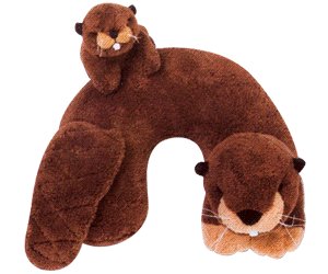 Expressly from Noodle Head. Beaver Travel Buddy with Baby Buddie ! Snuggles to go! Travel Buddie neck pillow comfortably support sleepy heads on planes, trains, and automobiles. Kids and parents are flocking to these adorable designs and their squishy plush feel. Kids will take them everywhere - and will not leave them behind! Ages 18 months and up.