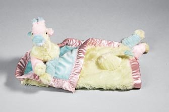 Combination Plush Animal and Security Blanket Cuddly Soft Cotton Polyester Measuring 15 inches by 15 inches; Child Safety tested; a Design by Lori Turner. Please follow safety instructions given on the blanket toy.