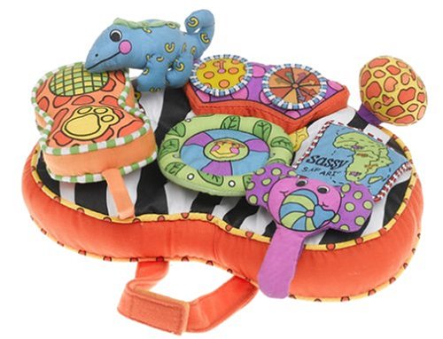 Twelve fun activities are featured on this play pad that easily attaches to all infant car seats. Features include four popular nursery rhyme songs, soft glow light for night time travel, various animal sounds, and a steering wheel that is sized just right for little hands and honks when pressed. 6+ Months. ***