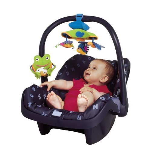 This is the first truly portable musical mobile set that can be attached just about anywhere - in the baby carrier or car seat, at home or on the go, or the animals can even be used as wrist rattles or finger puppets. The music, colors and turning movement of the mobile will keep your baby entertained while stimulating the senses. The set also includes a friendly frog mate to hold your baby's pacifier (not included), to keep it from getting lost.