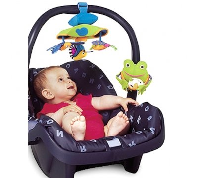 The On The Go Musical Mobile is the first true portable musical mobile set which can be attached just about anywhere to keep your baby entertained -- in the baby carrier/car seat at home or on the go, on the Gymini 3-D Activity Gym, the Activity Arch, or even on the wrist when playing with your baby.