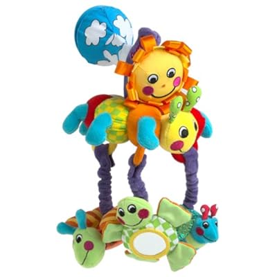 Mobile easily attaches to infant carrier, stroller, or car window! Includes strong suction cup arm for attachment to car window. Removable characters crinkle, chime, and rattle and can be individually attached to handle of infant carrier. Features: Strong suction cup for attachment to automobile window Removable characters can be attached to infant carrier Frog makes rattle sound and mirror teaches baby self-awareness Shiny snail makes chime sound Butterfly wings are crinkly and colorful beads make rattling sound Strong magnetic straps keep mobile securely attached Ages: Birth +