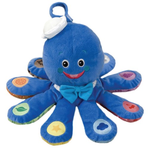 The Baby Einstein Octoplush is a soft, multi-textured, developmental plush toy. Young babies can hug Octoplush to hear a Baby Einstein melody and explore the textures for tactile development. As baby grows, colorful stitched satin patches on velour legs invite baby to learn color names through repetition. Squeeze each leg to hear color names in English, Spanish and French. Patterns of the color names are also printed on the underside of each leg in multiple languages.