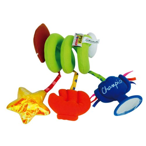 This all-plush toy is easy to attach—just wrap it to a car seat, a stroller or a highchair and go