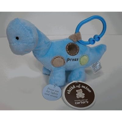 Carter's Dinosaur is soft, cuddly, and lots of fun. This plush has special features designed for hours of playtime. Baby can grab and even chew on the loop. Great features include an embroidered face and stitching details, and crinkles. Dino's clip is easily attached to your stroller or diaper bag to take wherever you go. He is surface washable ONLY!