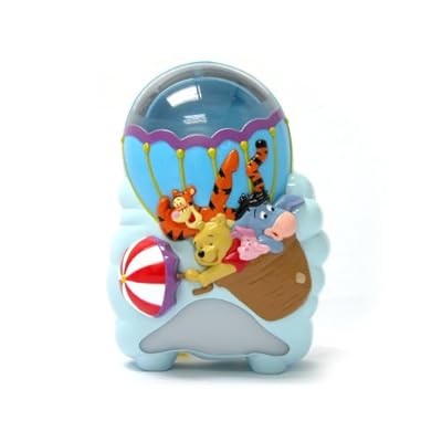 Winnie the Pooh and friends are flying high and having fun exploring in their balloon. Attaches to the crib rail via sturdy straps, or can be self-standing to be placed on a nightstand or bureau. Creates a soft nursery environment for baby. Measures 4.5"L x 6"W x 8"H.
